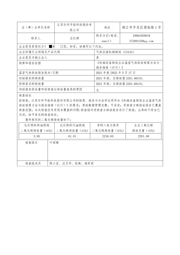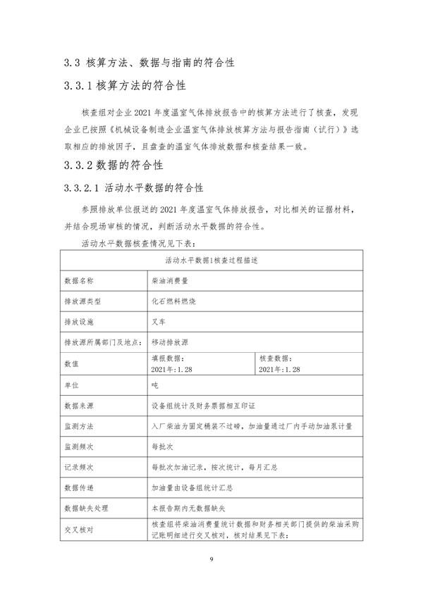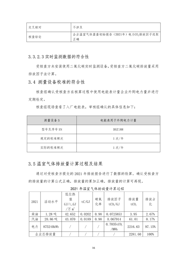 2021年年度温室气体排放核查报告